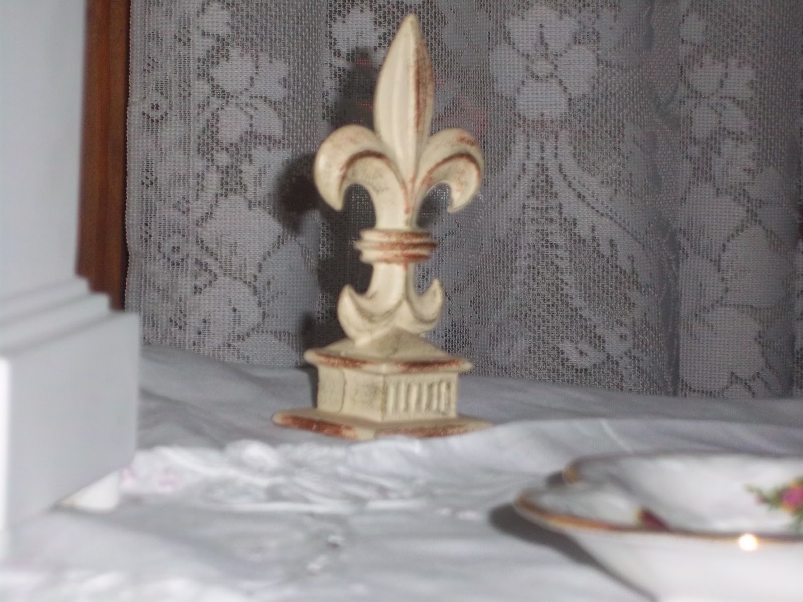 This time of year I like to cover some of my tables with linen. My side table I cover with a small tablecloth I purchased for my Mom when I was in Paris. Clean, crisp, white and a cleaner look. This is my view from where I blog.