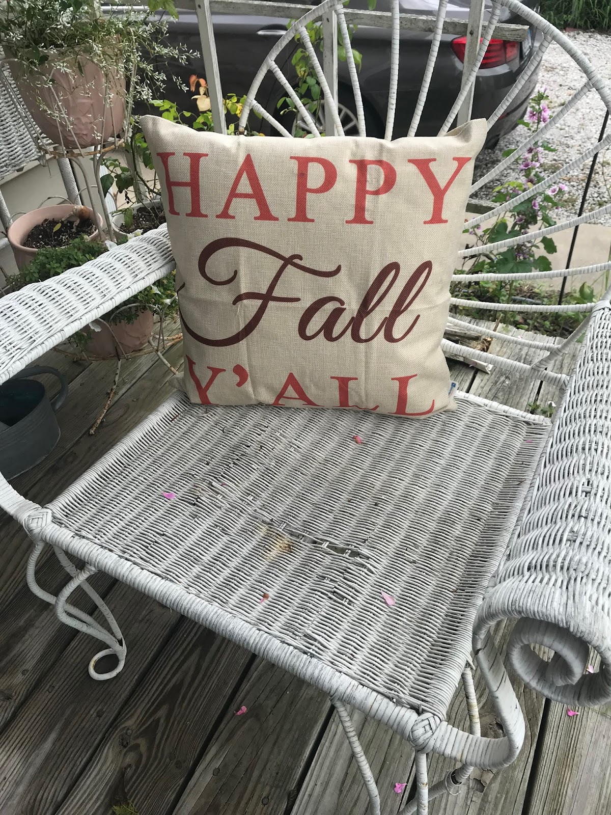 Pansies in tea cups were on the porch to welcome guest